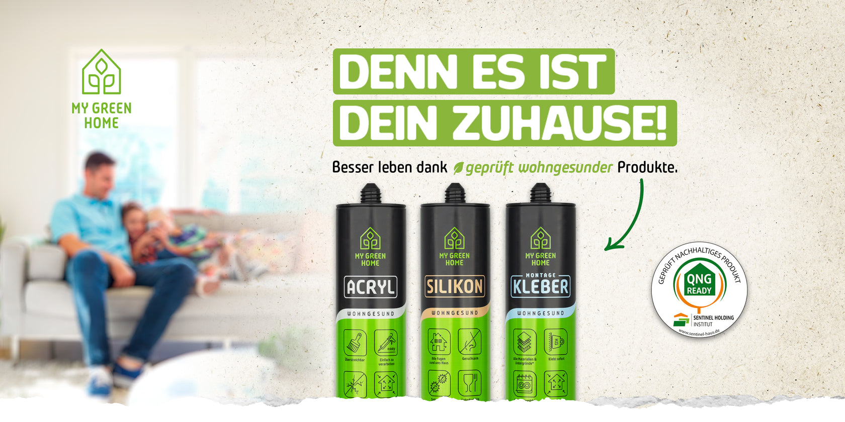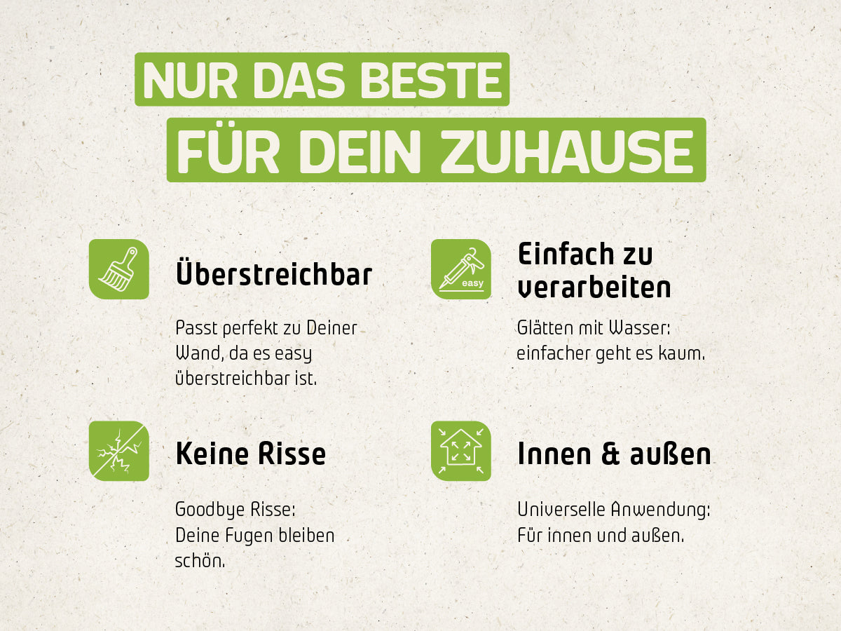 Schnell einen Riss reparieren oder die Fugen Deines Trockenbauprojekts abdichten - mit unserem MY GREEN HOME Acryl gelingen Dir kleine und große Projekte.
